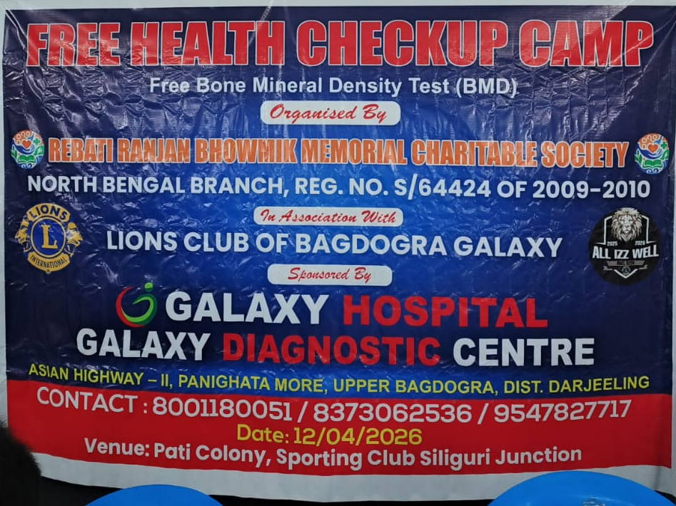 This initiative was conducted in association with the Lions Club of Bagdogra Galaxy and was proudly sponsored by Galaxy Hospital and Galaxy Diagnostic Centre. Their continuous support played a crucial role in making this event successful and impactful. Together, we aimed to bridge the gap between healthcare services and the community, especially for those who may not have easy access to regular medical checkups.