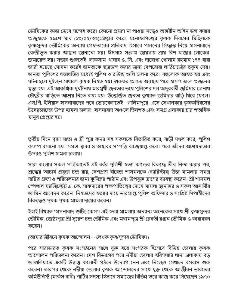 In 1962, as President of the Krishnanagar Krishak Samiti, he organized “Krishak Day” and distributed leaflets demanding the rights of peasants.